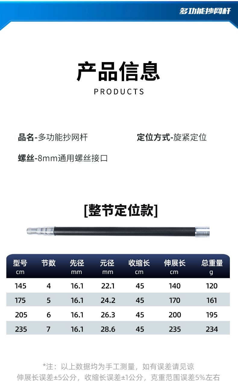 多功能便携抄网杆,伸缩后45mm轻巧便携